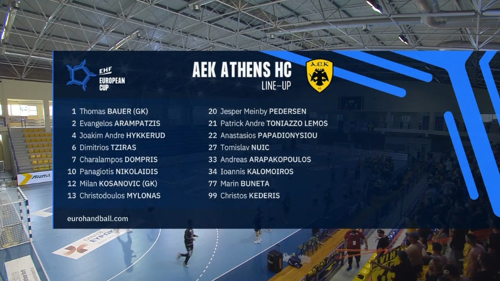 Only five minutes now until throw-off. A reminder of how the two teams got here - Athens won six out of eight matches, eliminating KH Prishtina, CSM Bucuresti, HC Neva SPb and RK Gorenje Velenje. They beat Velenje in the semi-final double-header after winning at home and drawing away.