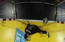 The system developed by the Handvision Association, in collaboration with the French Handball Federation (FFHB), uses a special wide-angle camera fixed to the crossbar to give a complete picture of the goal line.