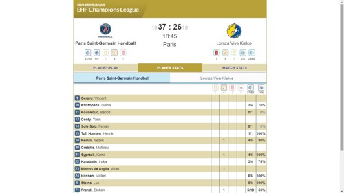 - On Tuesday, Paris Saint-Germain outplayed group A leaders Lomza Vive Kielce, comfortably winning 37:26