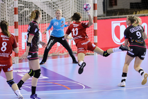 Odense and CSKA have thrown off. Lois Abbingh has made much of the running for Odense so far, with six attempts at goal - two successful. A goal apiece for Rikke Iversen and Ayaka Ikehara bring the hosts' total to four, against two for CSKA from Ekaterina Ilina.