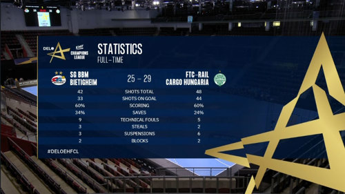 15:31 | FULL-TIME SG BBM Bietigheim 25:29 FTC-Rail Cargo Hungaria
