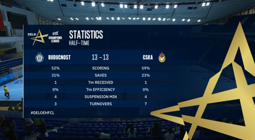 Could this be a turning point? Timeout for Buducnost with 27 minutes on the clock! CSKA pull it level 12:12 after a turnover and a fast-break goal by Gorshkova (2/3). The Russian side have really tightened up their defensive line, it will make for a very interesting second half. Join us here!