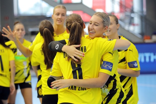 Could the debutants Dortmund be on the way to their first points? The German side are showing strong form and head to the break with a one-goal edge over Podravka, following a stand-out half for Alina Grijseels, who led with six goals.